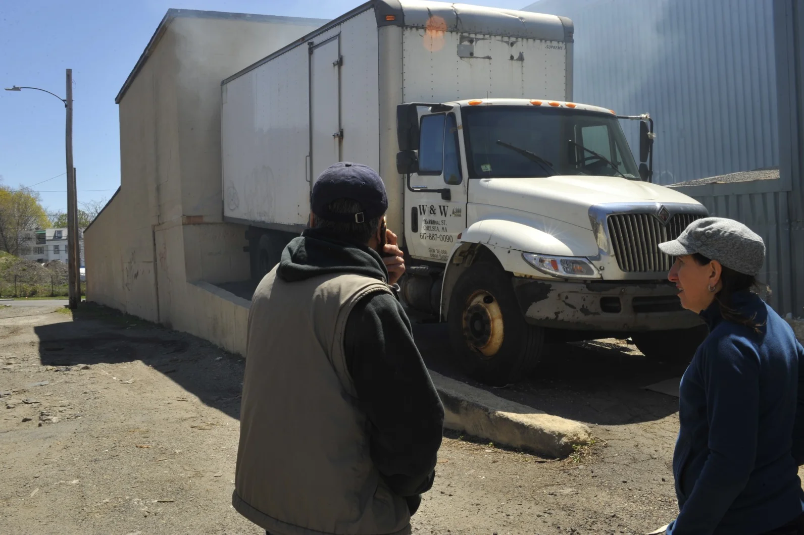Roseanne Bongiovanni confronts the owner of WW trading who left their broken truck running and spewing tons of toxic fumes into the air with its broken exhaust system.