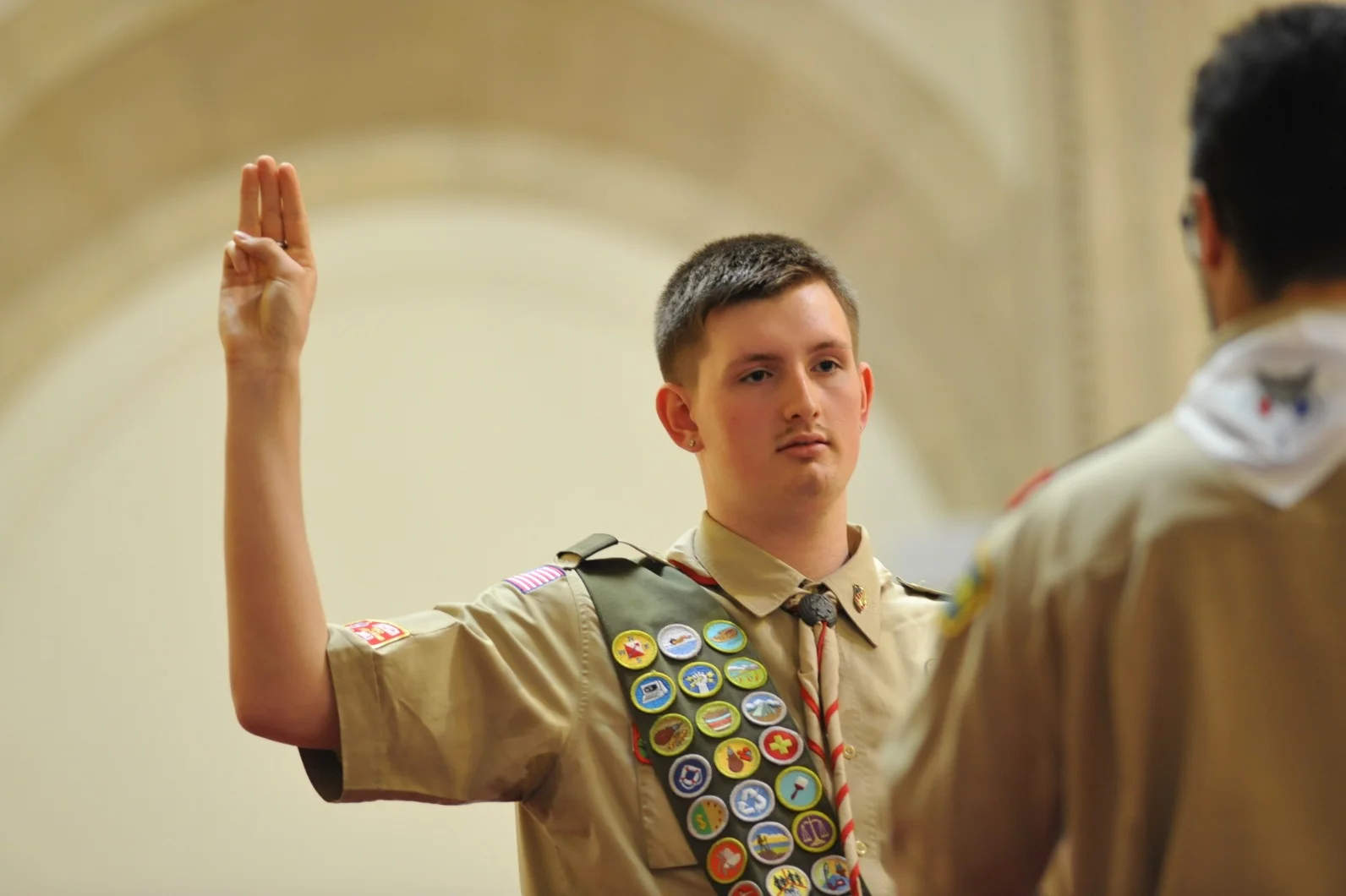 Paul Michael Bonetti takes the Eagle Scout pledge.
