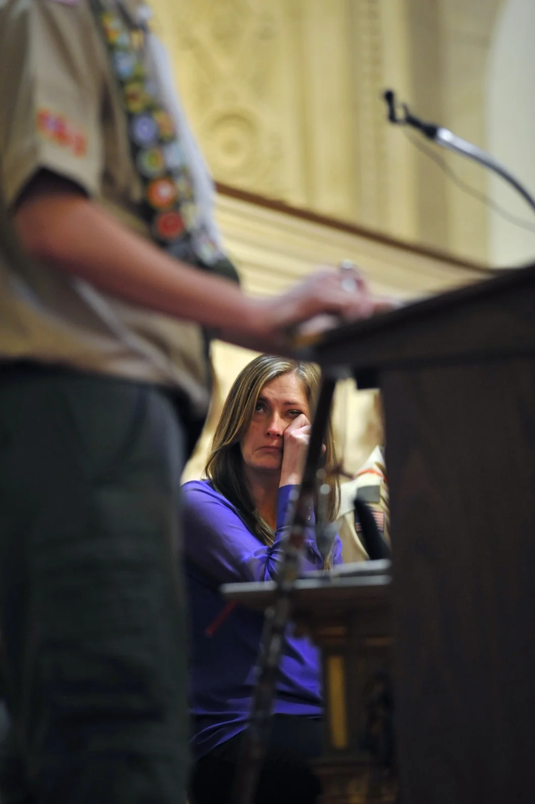 Paul's mom Melissa sheds a few tears of joy as she looks on as Paul thanks everyone for helping him become the person he is today and will be as the years go on.