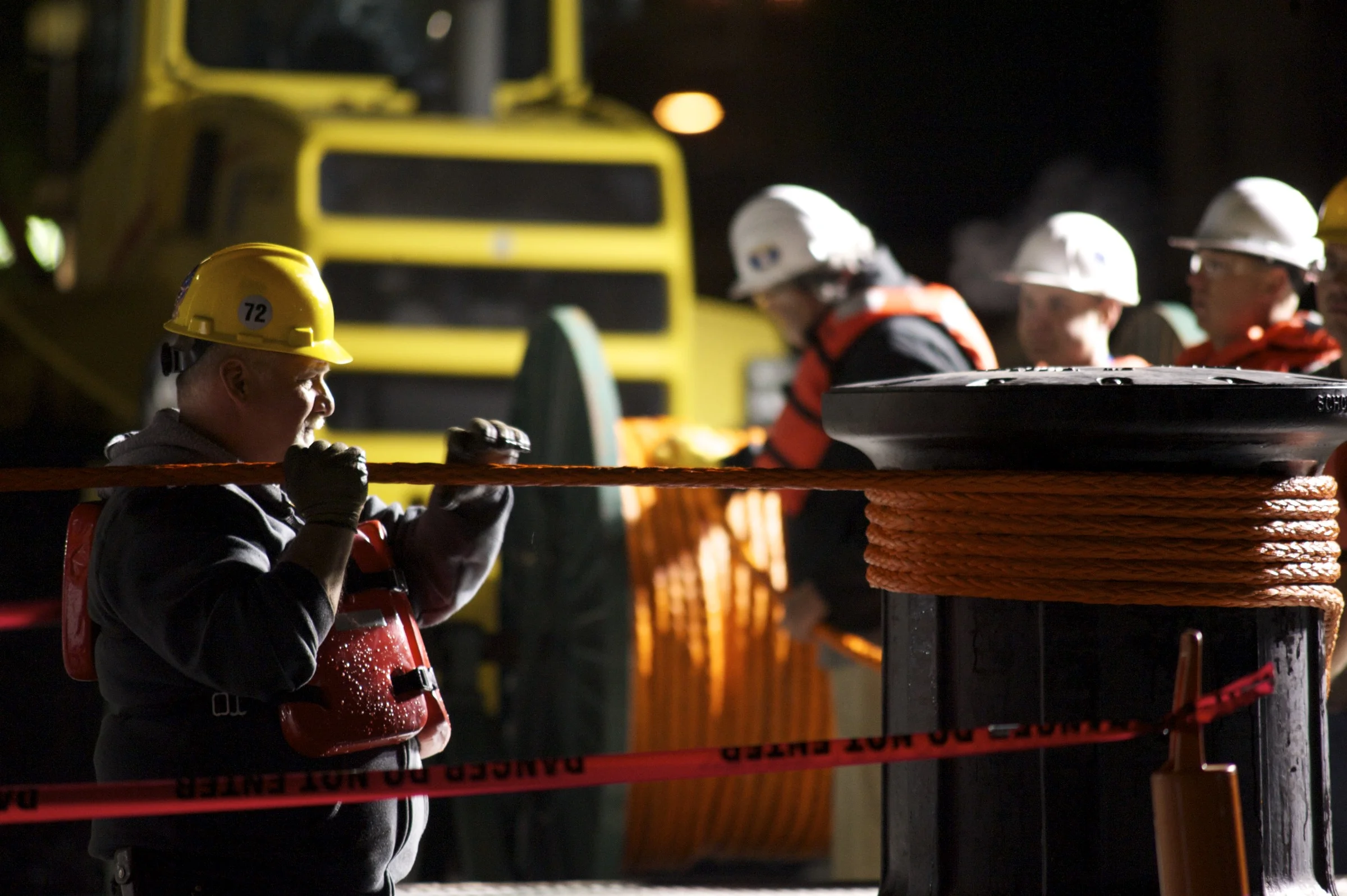 Pulling on the bow lines and rapping them around a mooring was hard grueling work.